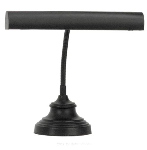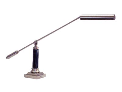 This Black and Satin Nickel floor lamp will allow you to have your lamp positioned off to the side of your piano music rack or music stand. This provides more visible area for your music. Finish - Black and Satin Nickel, Height - 54" (max), Arm of 44", Base - 10", Shade - 10", Bulbs - 60T-10 click here for larger image