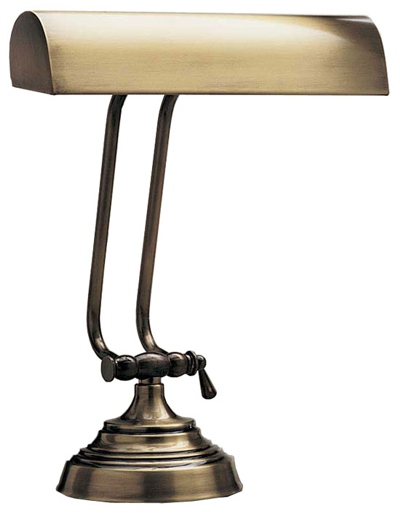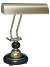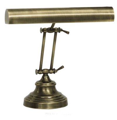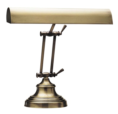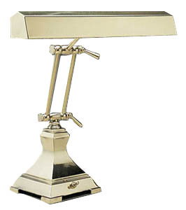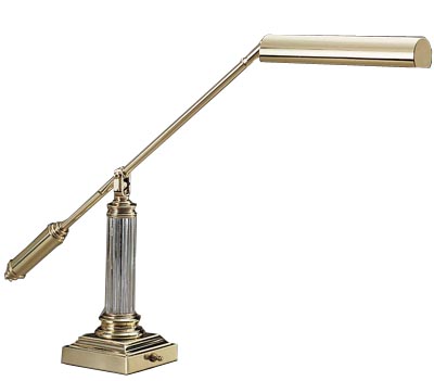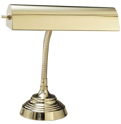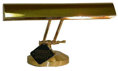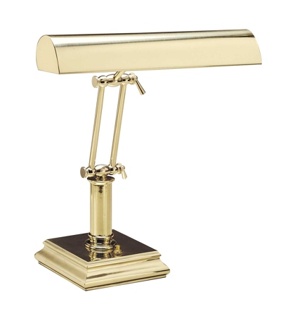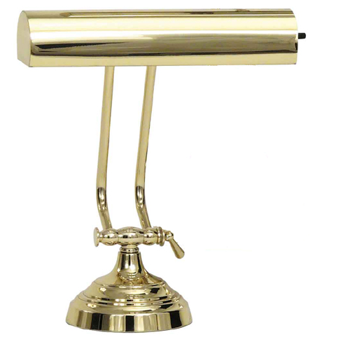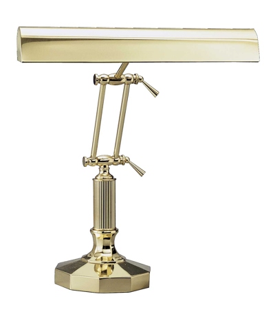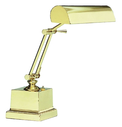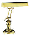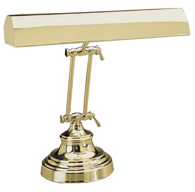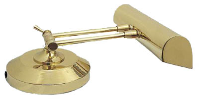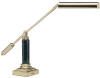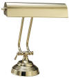 This two way adjustable polished brass lamp with round 6 in. base offers light for desks or pianos. Finish Polished Brass, Height 0 in. - 12 in. adjustable, Bulbs 40wT10 - 2 included click here for larger image