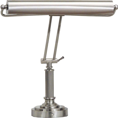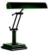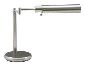 This swinging arm lamp can be used as a desk lamp or on a piano. With a 7.5" base, and 10" shade, this lamp will add to your decor. Finish Nickel, Height 13.5", Bulbs included click here for larger image