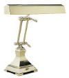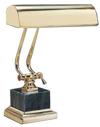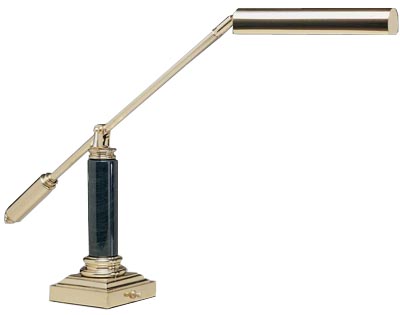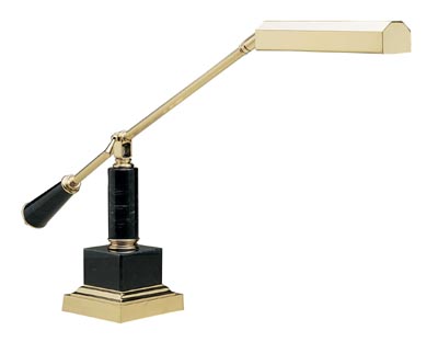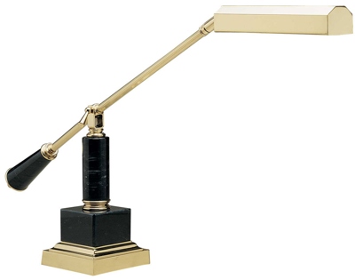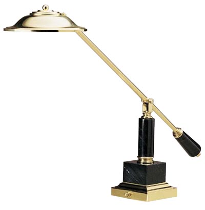 This 7" round shaded balanced arm lamp has a unique style and look. Used on desks or on pianos, and includes a bulb. Finish Polished Brass and Black Marble, Height 21", Bulbs 50W halogen click here for larger image