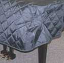 This photo illustrates from left to right: Brown Mackintosh, Black Mackintosh, Brown Vinyl, and Black VinylBe sure to select your color and material as well as your desired piano model below. Quilted cover shown at right.